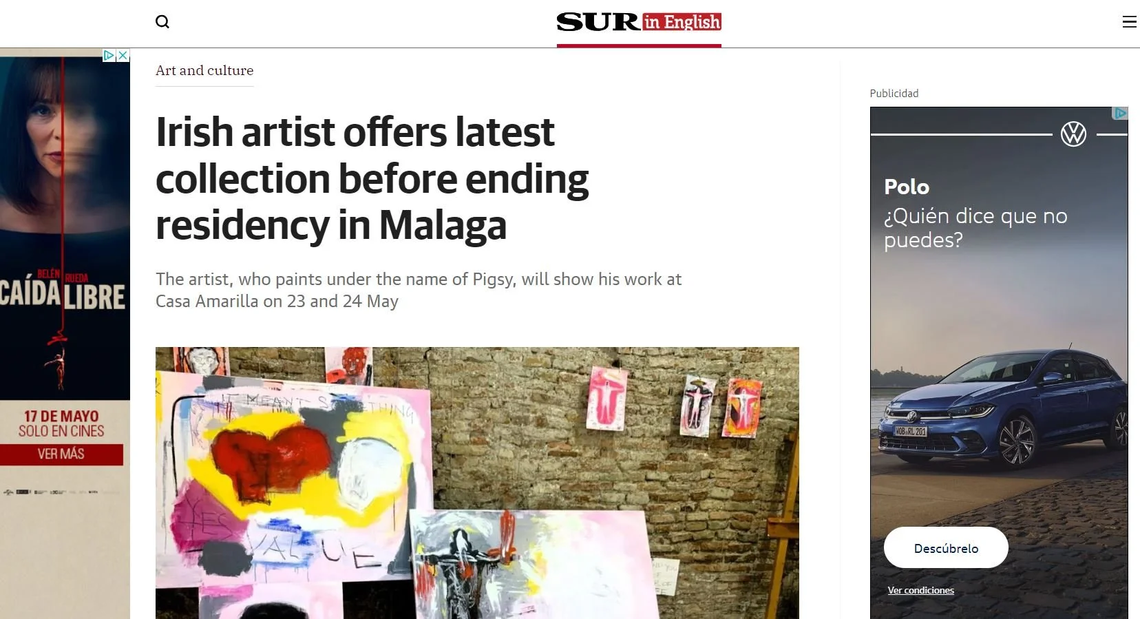 Irish Artist PIGSY’s latest art exhibition “First Things Last” will be shown in La Casa Amarilla Studios on Calle Santos, over 23 - 24 of May 2024. See below for the Sur in English article about the art exhibition.