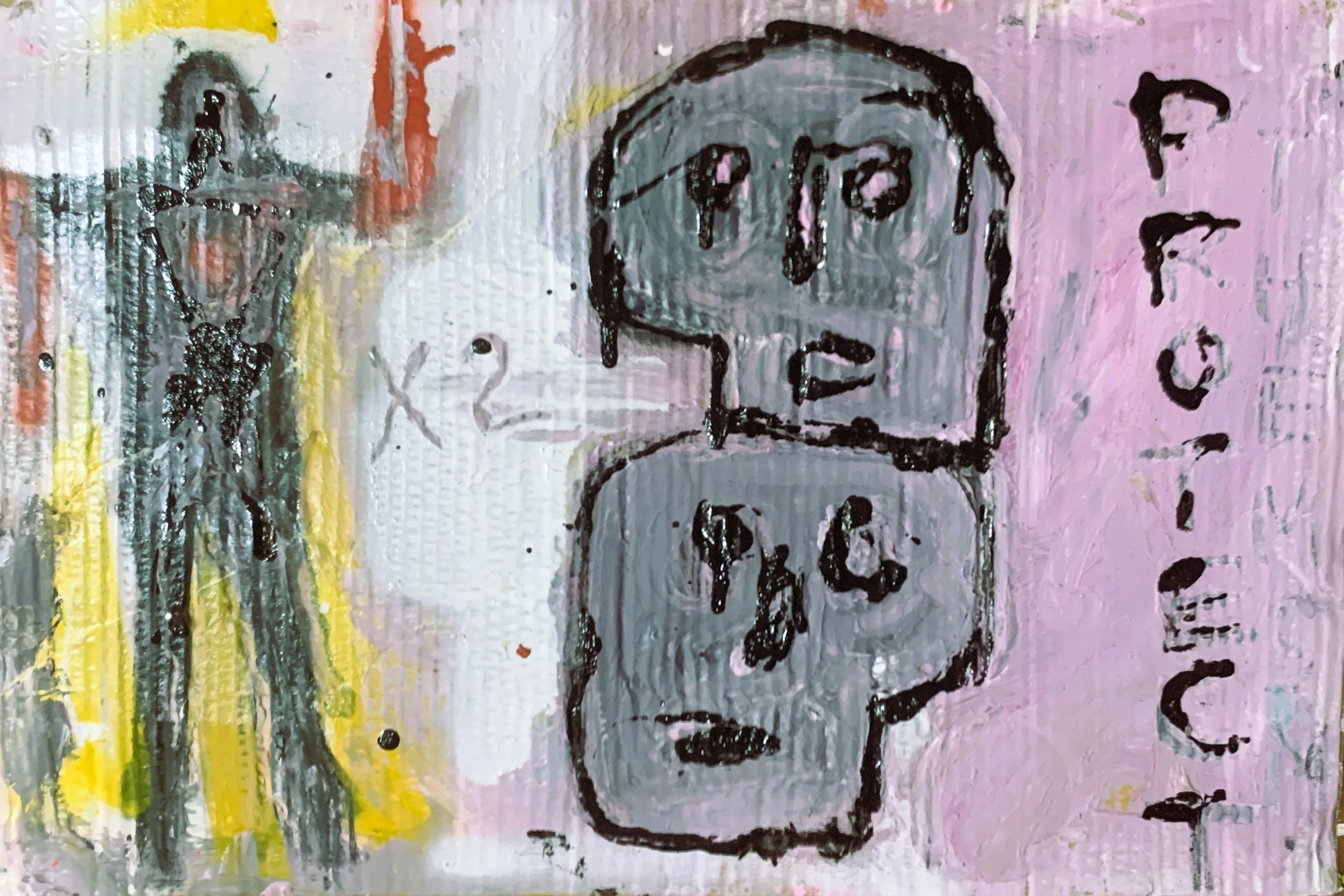 This Situation is Muy Fragil #01 - 52 cm H x 52 cm W Mixed Media on Board