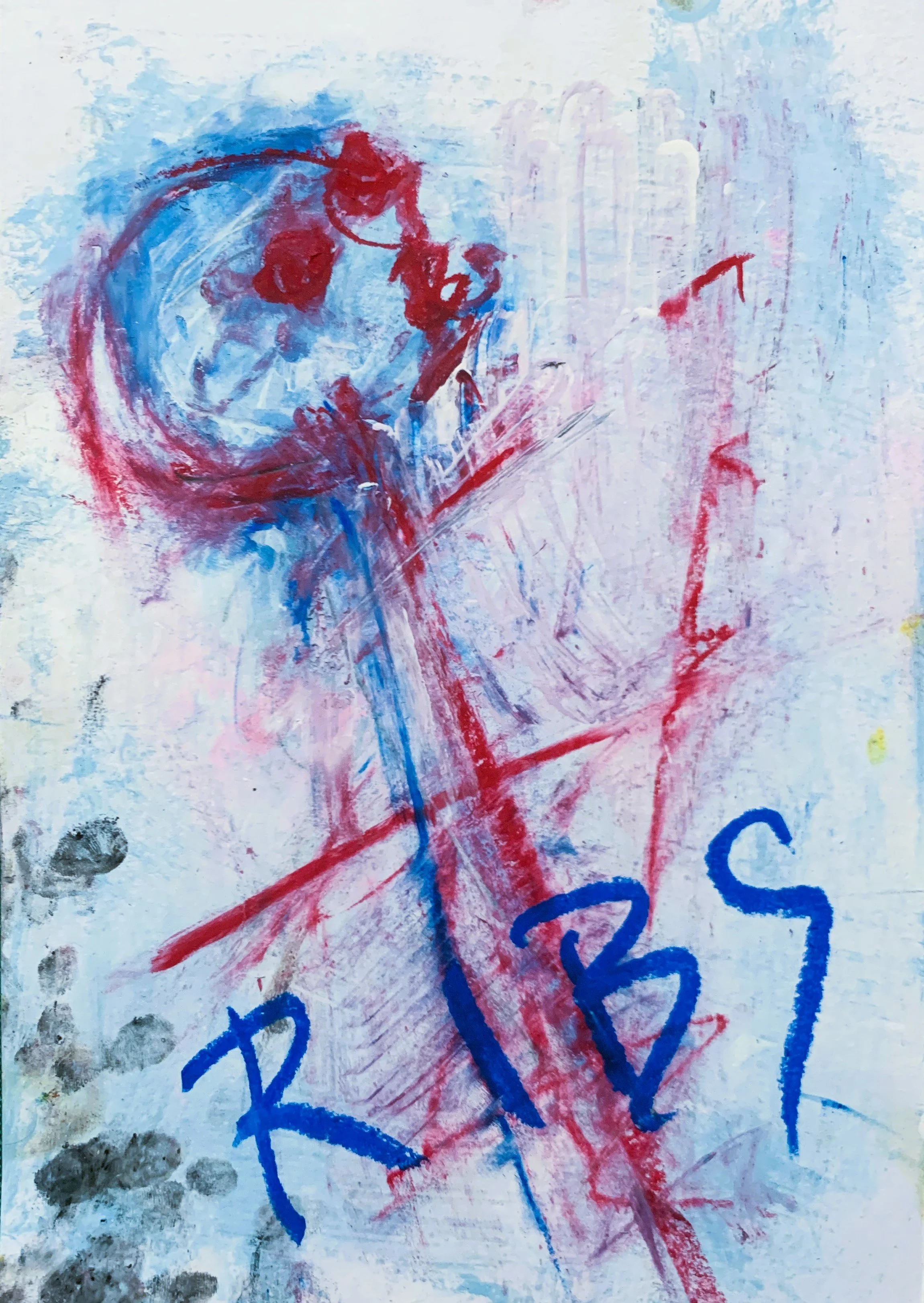 1,2,3, Study - Purple Skull - A4 Mixed Media on Paper