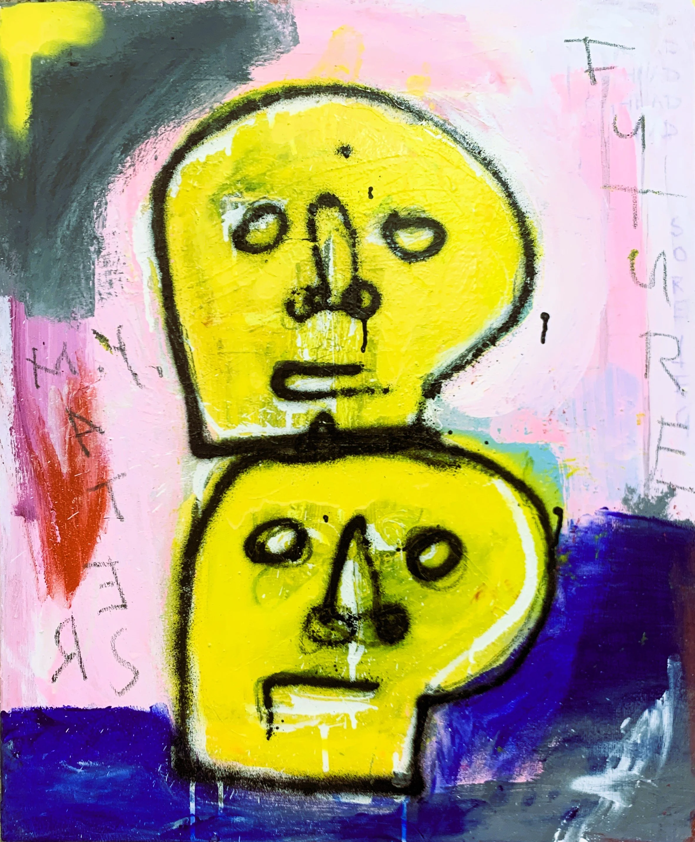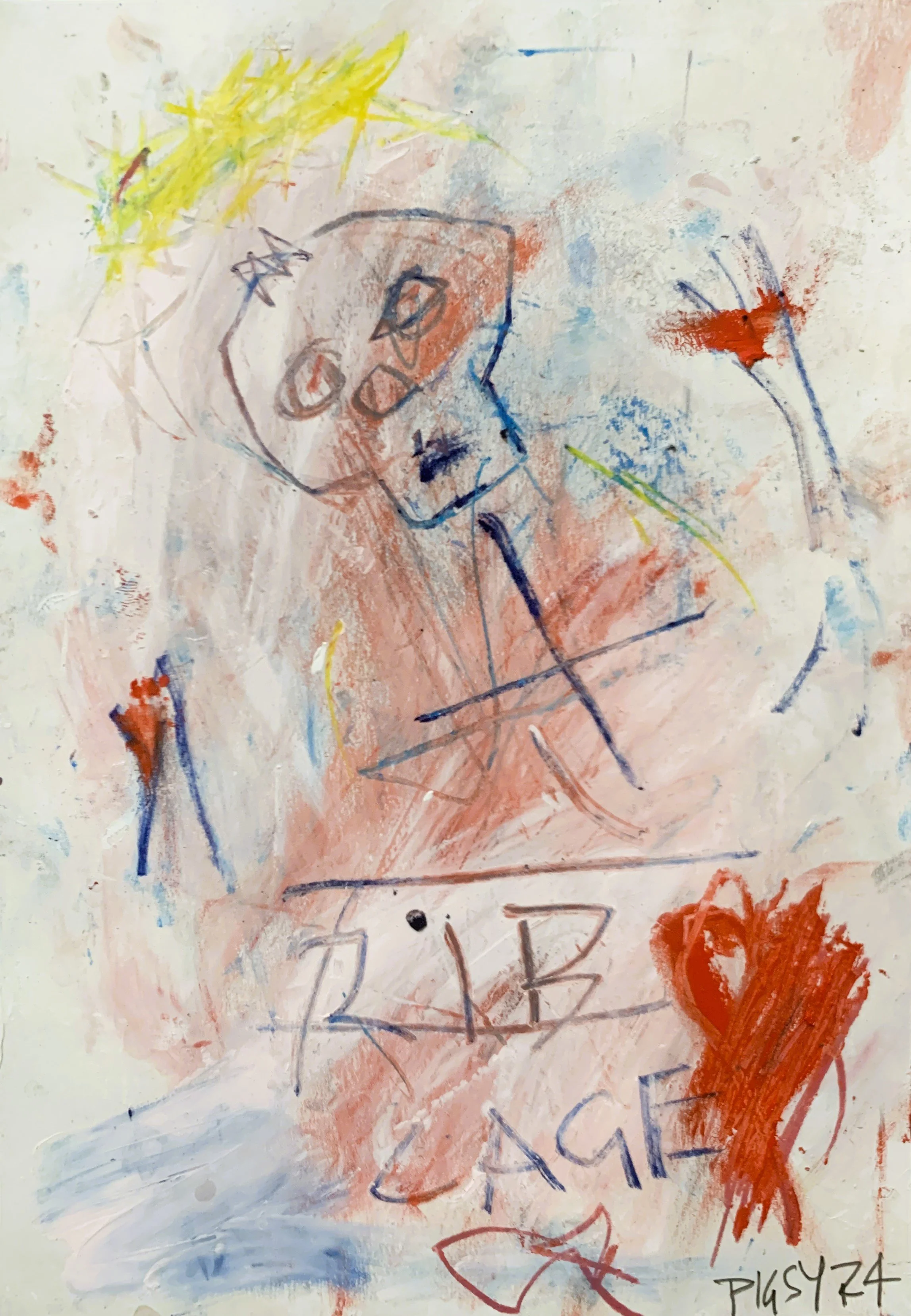 Yellow ans Pink Skull - A4 Mixed Media on Paper