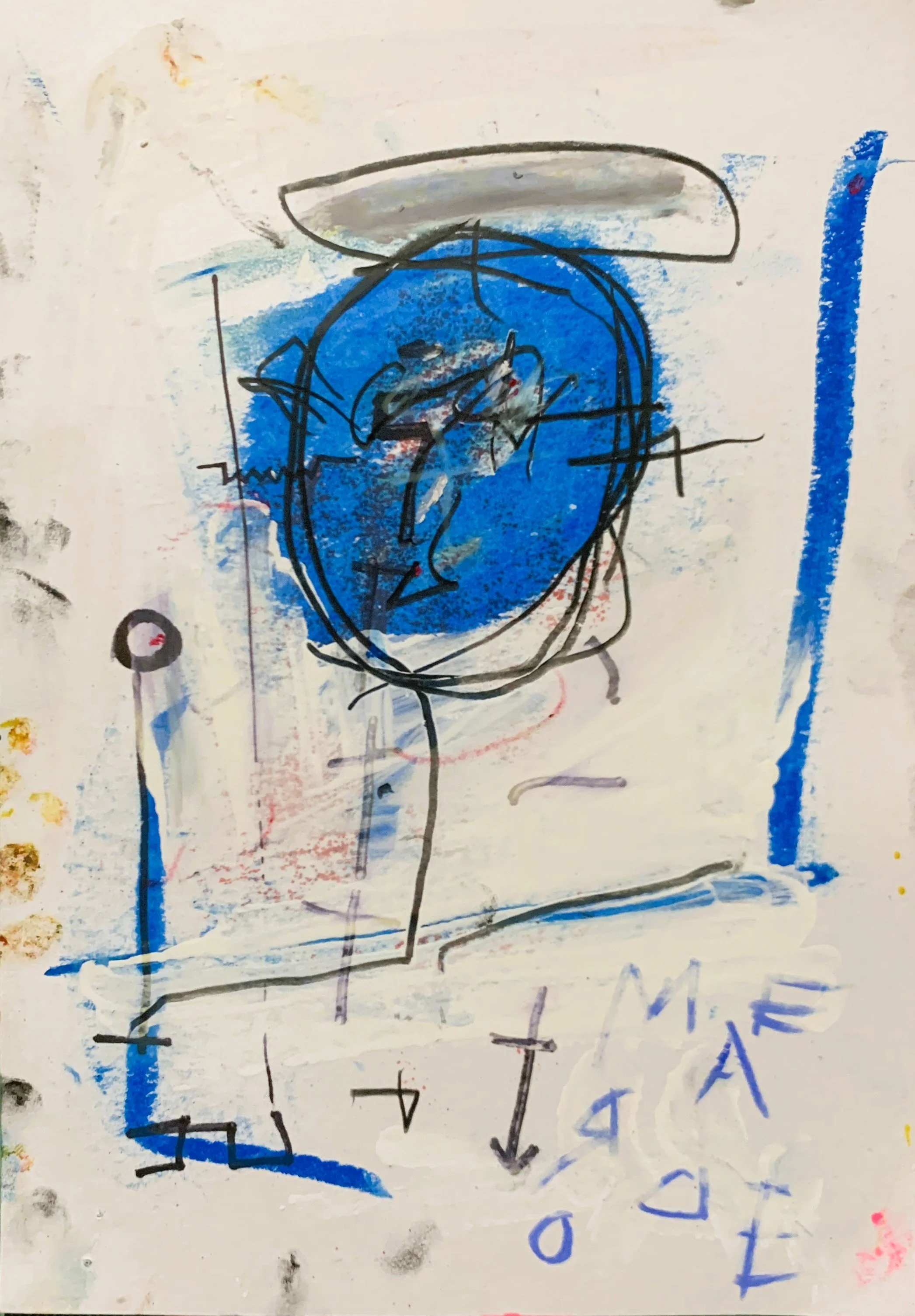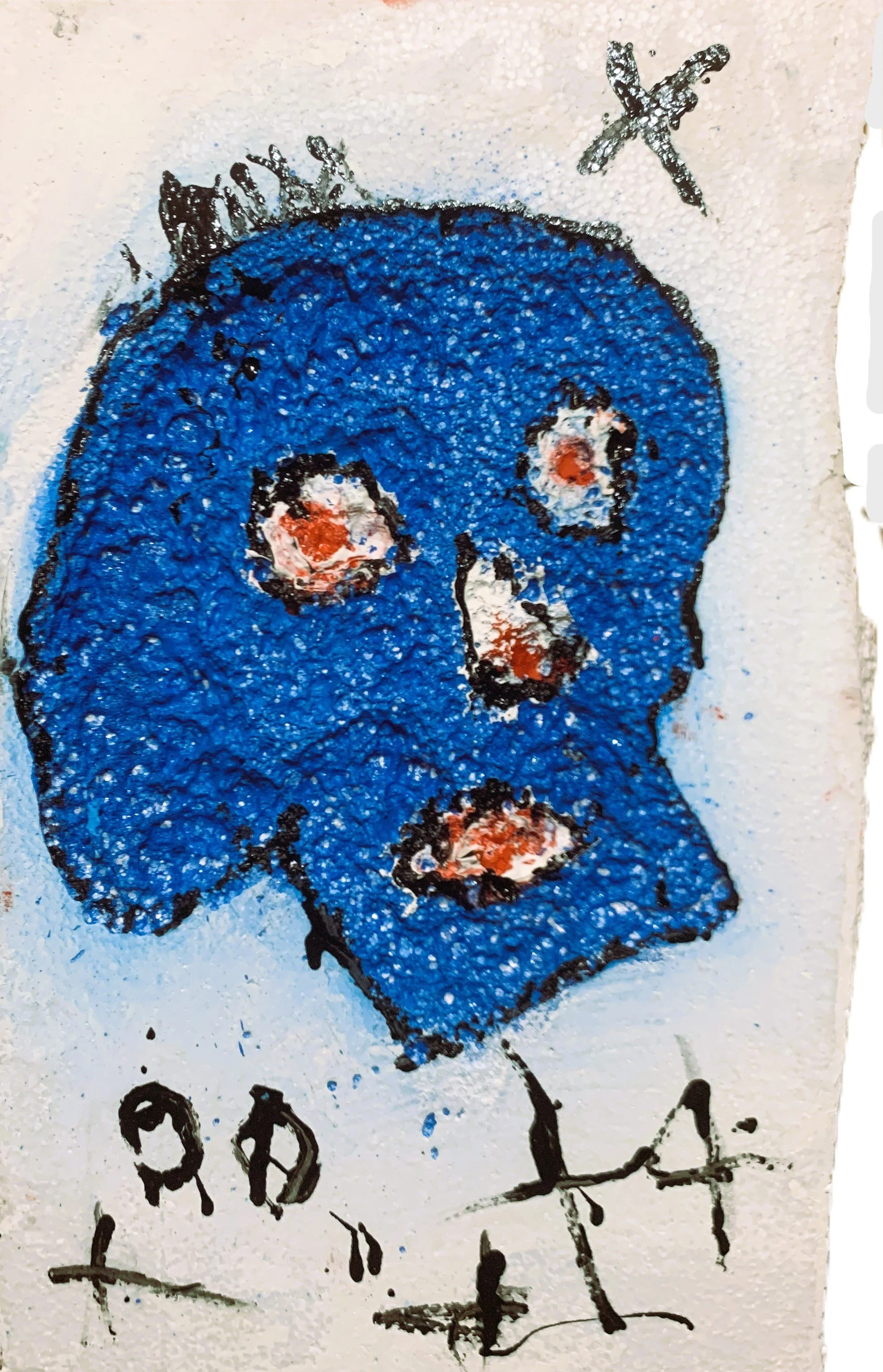 Malaga Blue Skull 1 - A3 Mixed Media on Stiroform