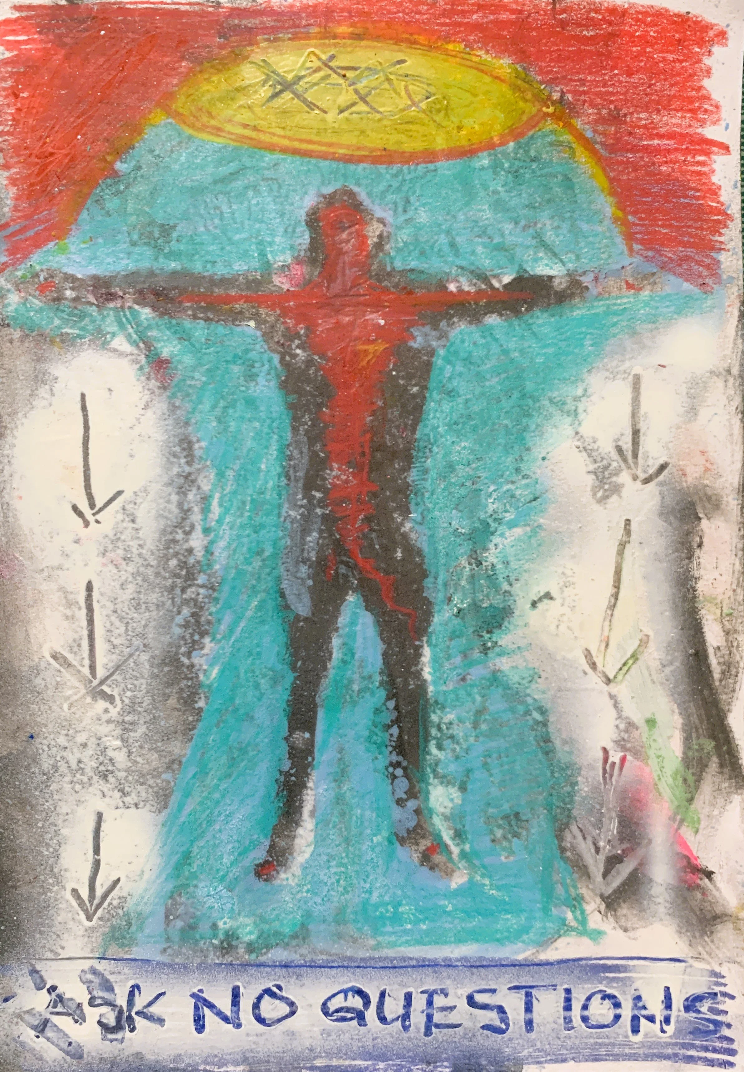 Son and Nails -115 cm H x 146 cm W Mixed Media on Canvas