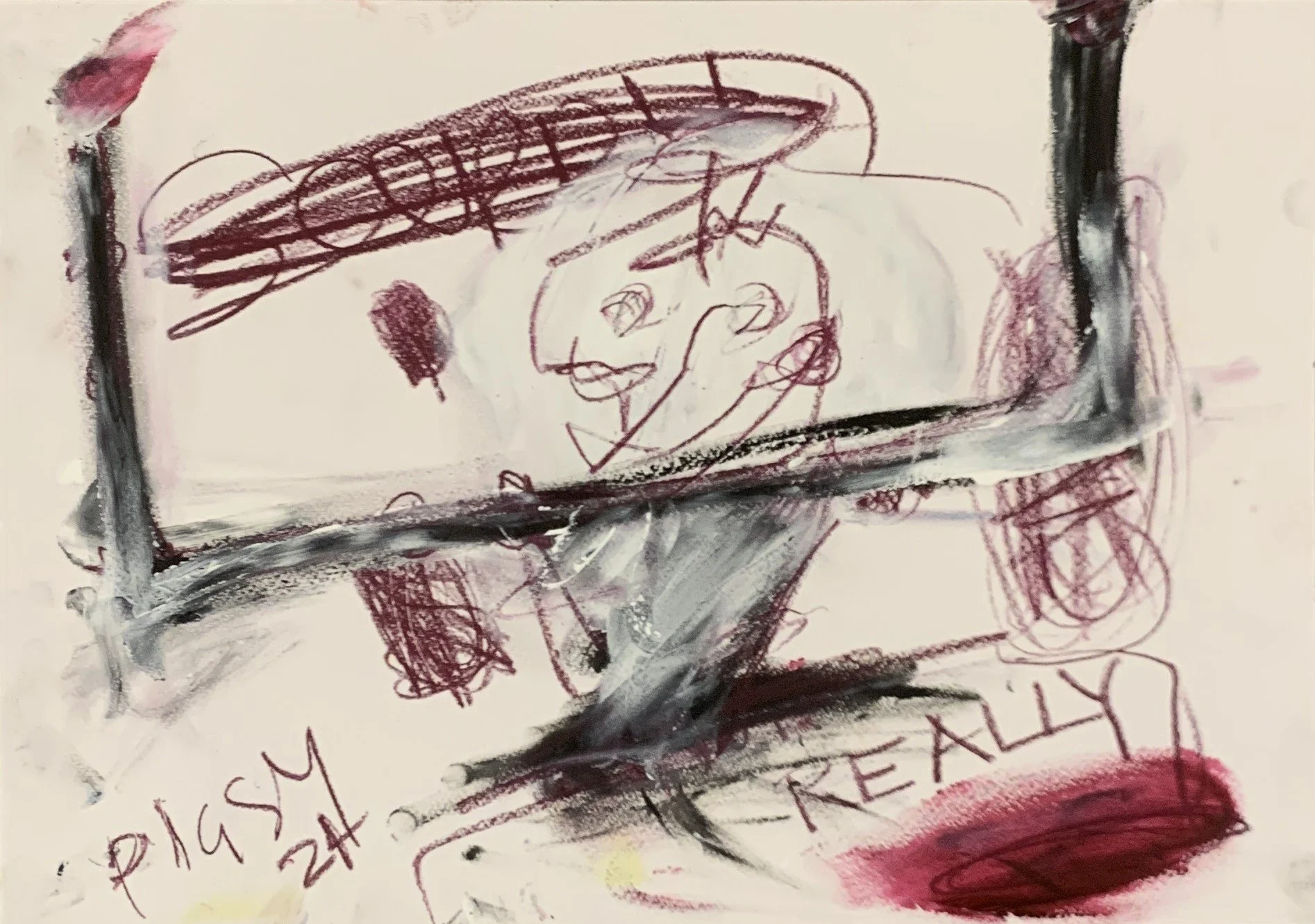 I Do Regret It - 120 cm H x 90 cm W Acylic, Spray Paint, Oil Pastels, Marker, Pencil and Glue on 2 unstreched Canvas